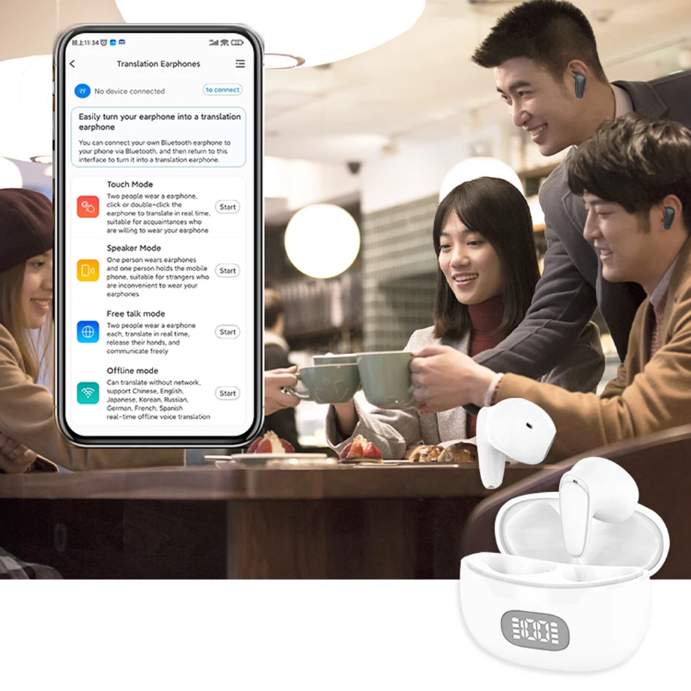 144 Languages Real Time Translator Earbuds Wireless Bluetooth-Compatible 5.1 Two-Way Translator Earbuds Instant Translated Smart Voice Translator for Sports Business Travel Feature: 1. Languages Translator Earbuds: Experience seamless global communication with our languages translator earbuds, supporting real-time translation in 144 languages with 99% accuracy. Perfect for international travel and business, ensuring no language barriers wherever you go. 2. Real Time Translator Earbuds: Our real time translator earbuds offer multilingual translation with support for 74 languages and 70 accents, achieving 99% accuracy. Ideal for travelers and professionals needing precise and immediate understanding across diverse languages. 3. Translation Earphones: Enjoy uninterrupted audio clarity with our translation earphones, designed for quality living. With instant Bluetooth-Compatible connectivity, superior sound, and long battery life, experience seamless translation without any disruption. 4. Two-Way Translator Earbuds: Designed for comfort and style, our two-way translator earbuds feature an ergonomic design that fits securely and comfortably. Made with soft, breathable materials, they are perfect for long listening sessions without discomfort. 5. Instant Translated Smart Voice Translator: Break language barriers effortlessly with our instant translated smart voice translator. Whether exploring new countries or connecting with family from different backgrounds, enjoy meaningful interactions and broaden your network. Specification: Origin: Mainland China Color: black, white (optional) Model: B28 Bluetooth-Compatible: 5.1 Bluetooth-Compatible distance: 10-15m Play time: 3-4 hours Battery capacity: earbuds 40mAh; charging box 350mAh Speaker: diameter 16/32 ohms Charging time: earphones 1 hour, charging box 1.5 hours Waterproof level: IPX6 Translation languages: 144 Color box size: 120*90*35mm Gross weight: 80g Note: |
