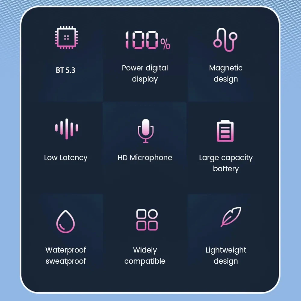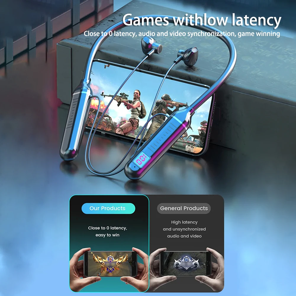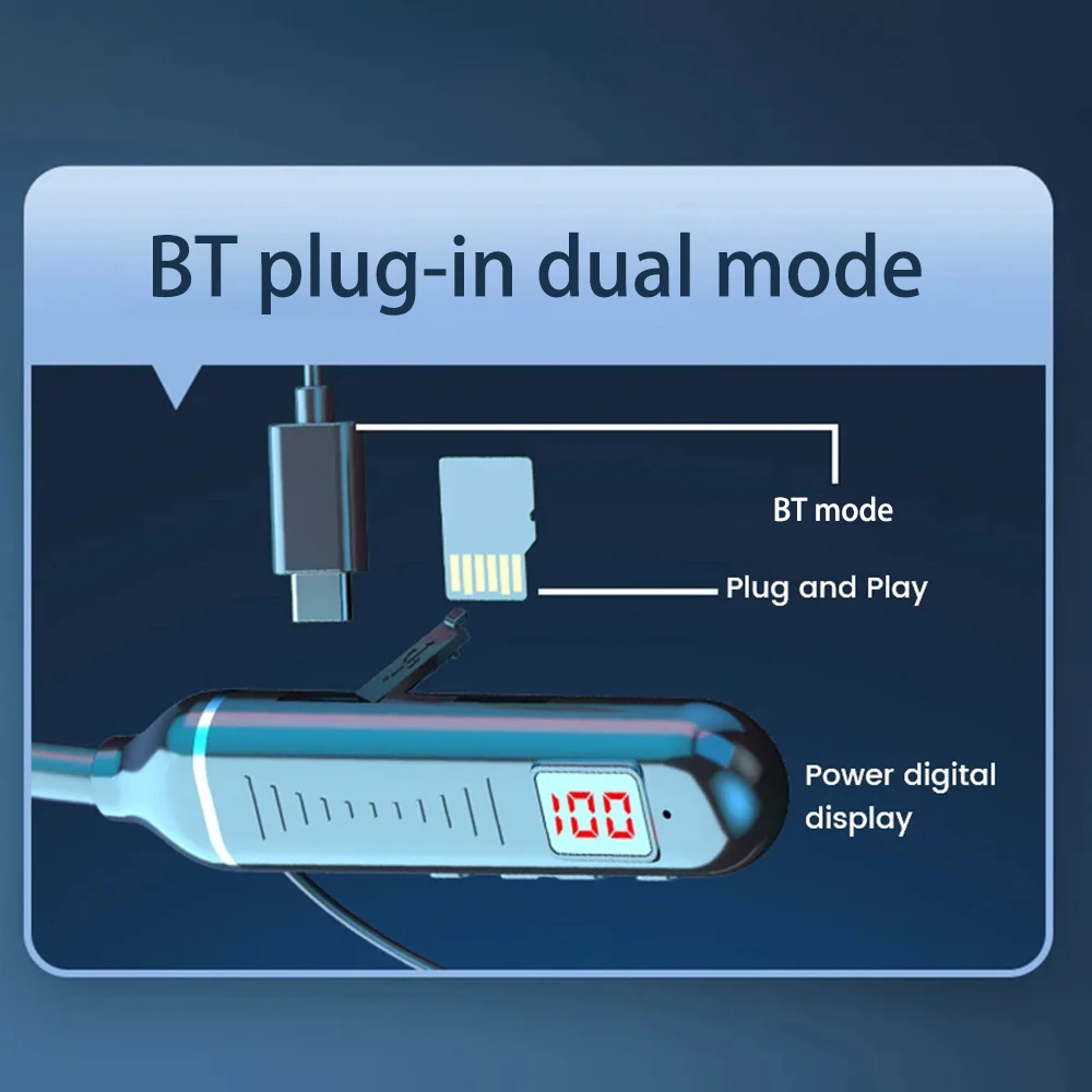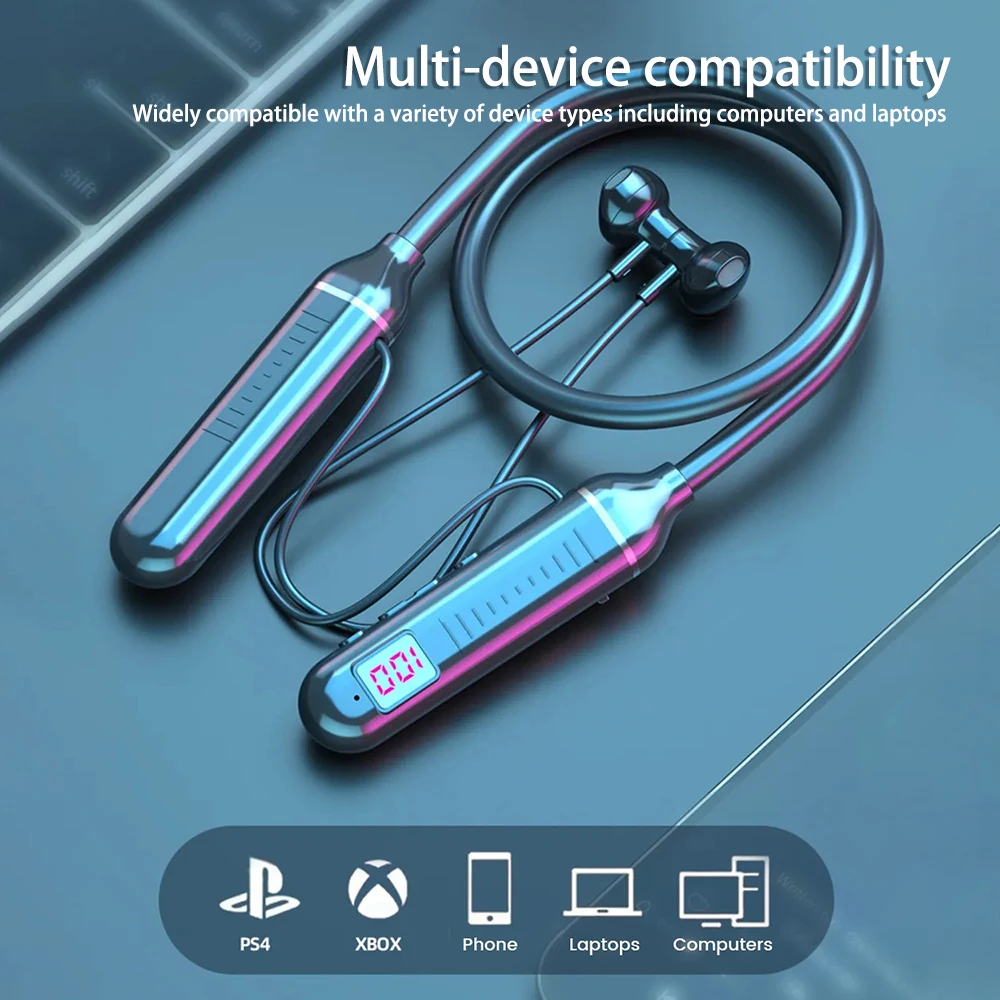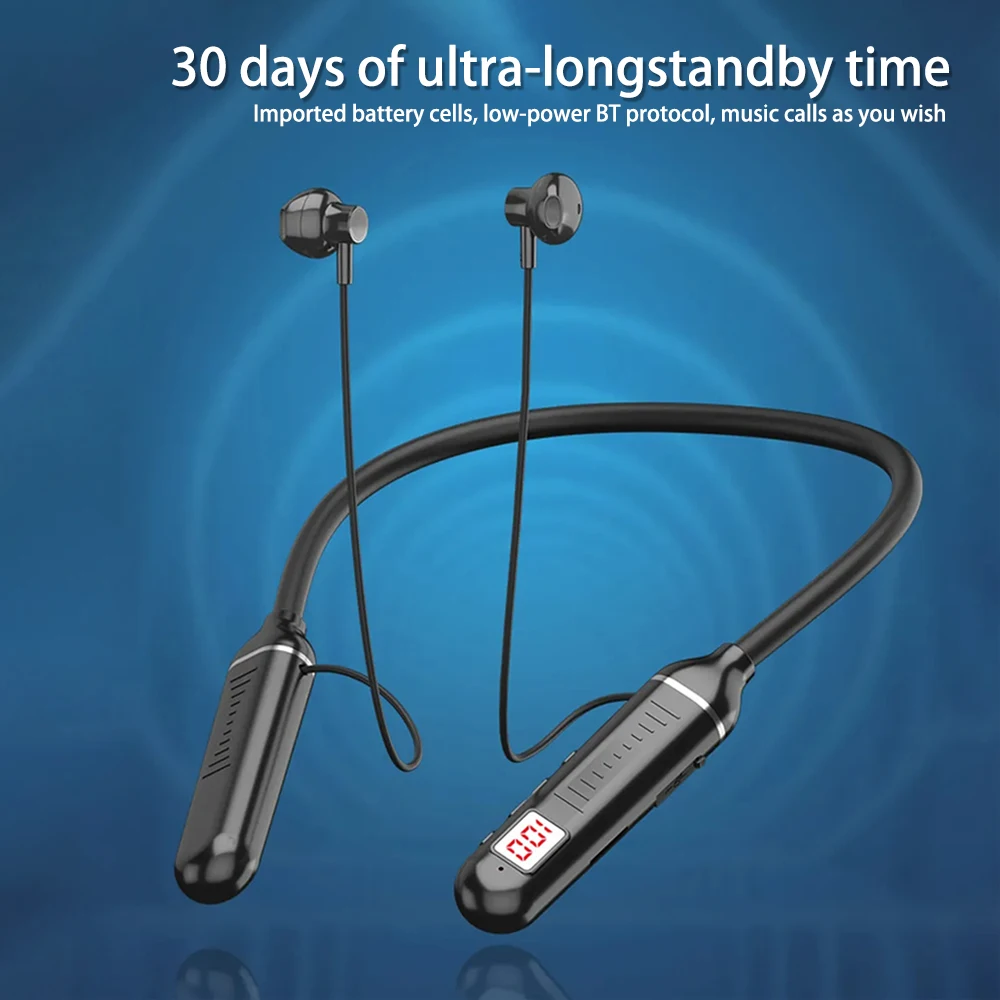 Wireless Neckband Earphone Hifi Sound Quality Bluetooth 5.3 Headphone with LED Power Display Neck Hanging Earbuds